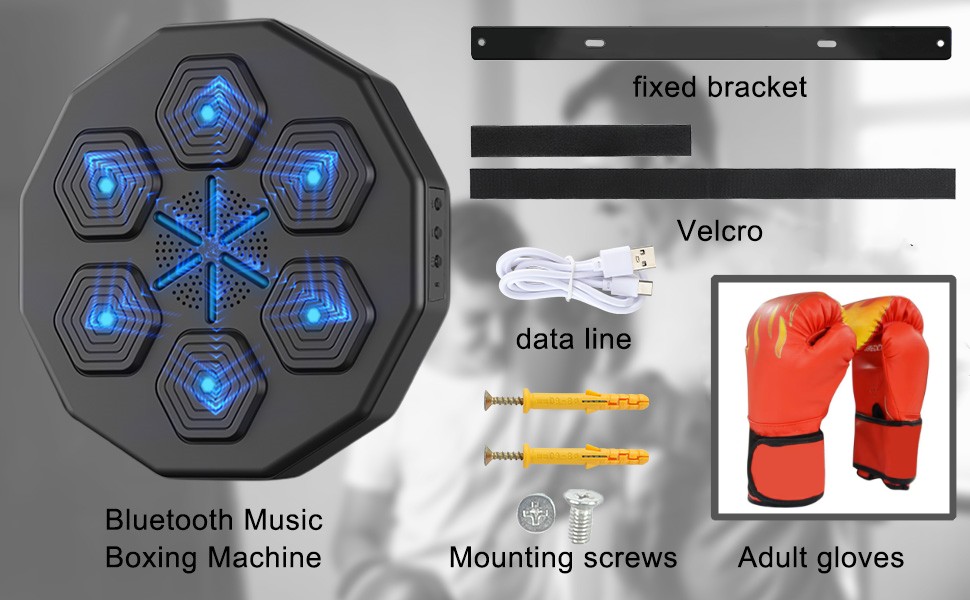 این دستگاه با اتصال به بلوتوث و پخش موریک به همراه نورهای رنگی که دارد فضای عالی برای تمرین بوکس، سرگرمی و کاردیو را برای شما فراهم می کند. پک محصول شامل دستگاه بوکس، یک جفت دستکش بوکس، کابل USB برای شارژ دستگاه،پایه دیواری محکم و چسب دو طرفه است که با ان میتوان به راحتی دستگاه را روی دیوار نصب کرد و خیال شما را بابت استحکام ان روی دیوار راحت می کند. با خرید این دستگاه دیگر برای ورزش و بوکس نیازی نیس خانه را ترک کنید. با پخش موزیک و پوشیدن دستکش های بوکس در خانه هم ورزش کنید هم روحیه خود را تغییر دهید و هم استرس را از خودتان دور کنید.